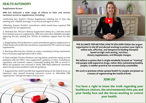 The Alliance for Natural Health USA (ANH-USA) is the largest organization in the US and abroad working to protect your right to utilize safe, effective, and inexpensive healing therapies