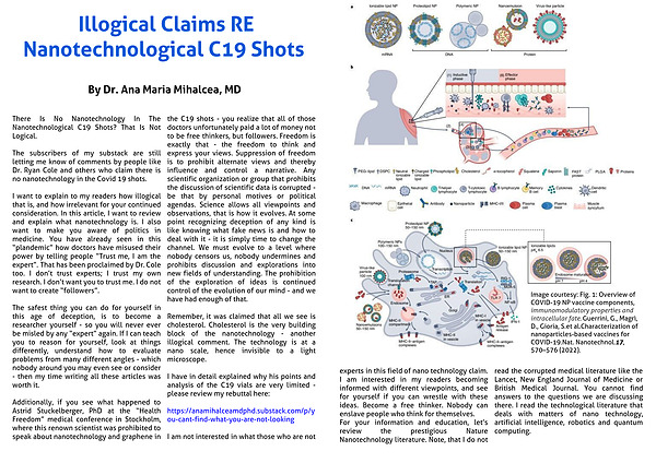 The subscribers of my substack are still letting me know of comments by people like Dr. Ryan Cole and others who claim there is no nanotechnology in the Covid 19 shots.