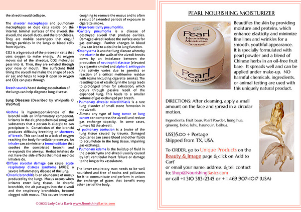The lower respiratory tract needs to be well nourished and free of toxins and pollutants for it to communicate and perform in unison the exchange of gases that benefit every other part of the body.