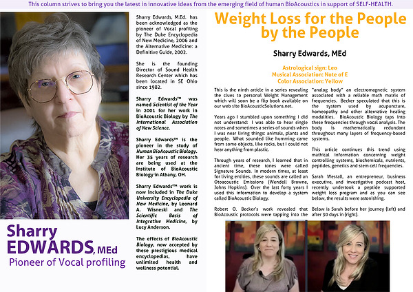 Sharry Edwards™ was named Scientist of the Year in 2001 for her work in BioAcoustic Biology by The International Association of New Science.