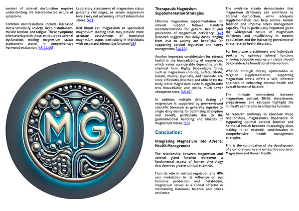 The evidence clearly demonstrates that magnesium deficiency can contribute to adrenal dysfunction, while adequate supplementation can help restore normal function and improve stress management capacity. This is particularly important given the widespread nature of magnesium deficiency and insufficiency in modern populations and the increasing prevalence of stress-related health disorders.