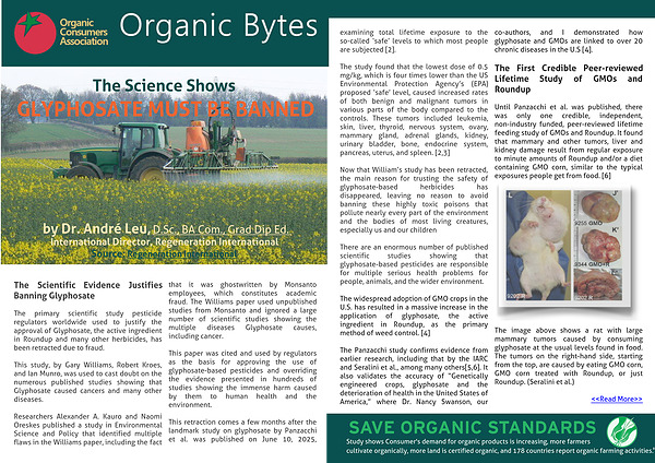 Now that William’s study has been retracted, the main reason for trusting the safety of glyphosate-based herbicides has disappeared, leaving no reason to avoid banning these highly toxic poisons that pollute nearly every part of the environment and the bodies of most living creatures, especially us and our children