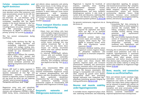 • From a systems perspective, bone and muscle are “deprioritized” under deficiency: they surrender magnesium to protect extracellular and critical organ pools, at the cost of gradual structural and functional decline. [628]