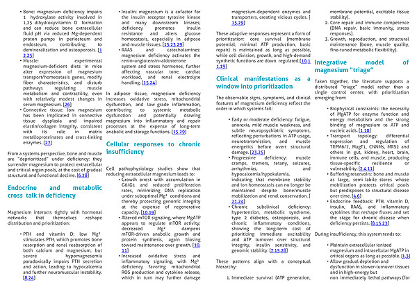 From a systems perspective, bone and muscle are “deprioritized” under deficiency: they surrender magnesium to protect extracellular and critical organ pools, at the cost of gradual structural and functional decline. [6