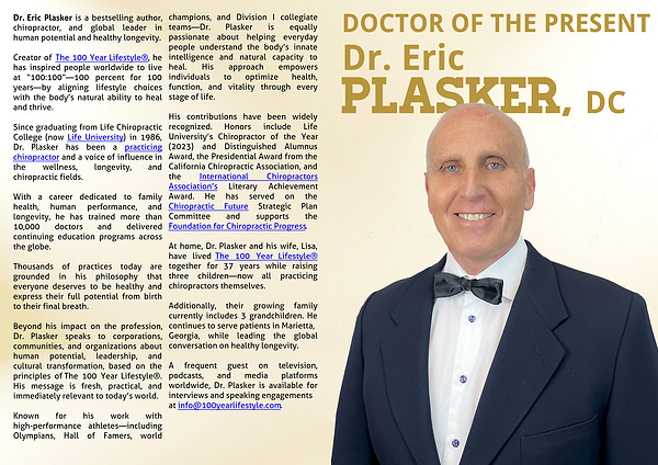 Dr. Eric Plasker is a bestselling author, chiropractor, and global leader in human potential and healthy longevity.