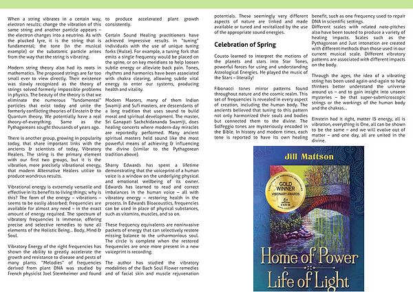Vibrational energy is extremely versatile and effective in its benefits to living things; why is this? The form of the energy – vibrations – seems to be easily absorbed; frequencies are available for almost any need – in the exact amount of energy required. The spectrum of vibratory frequencies is immense, offering precise and selective remedies to tune all elements of the Holistic Being… Body, Mind & Soul.