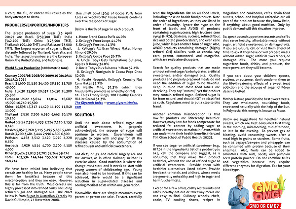 Until the truth about refined sugar and artificial sweeteners is properly acknowledged, the scourge of sugar will continue to worsen.  Governments will struggle to cope with and pay for all the diseases caused by the consumption of refined sugar and artificial sweeteners.