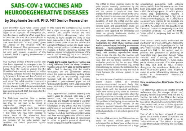 People don’t realize that these vaccines are vastly different from the many childhood vaccines we are now used to getting early in life. I find it shocking that the vaccine developers and the government officials across the globe are recklessly pushing these vaccines on an unsuspecting population. Together with Dr. Greg Nigh, I recently published a peer-reviewed paper on the technology behind the mRNA vaccines and the many potentially unknown consequences to health [4].