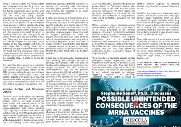 As we will soon see, α-synuclein, the prion-like protein linked to Parkinson’s disease, also makes its way to the brain from the spleen along the vagus nerve. The mRNA vaccines set up perfect conditions in the spleen for the formation and distribution of conglomerates made up of misfolded α-synuclein, PrP and spike protein.
