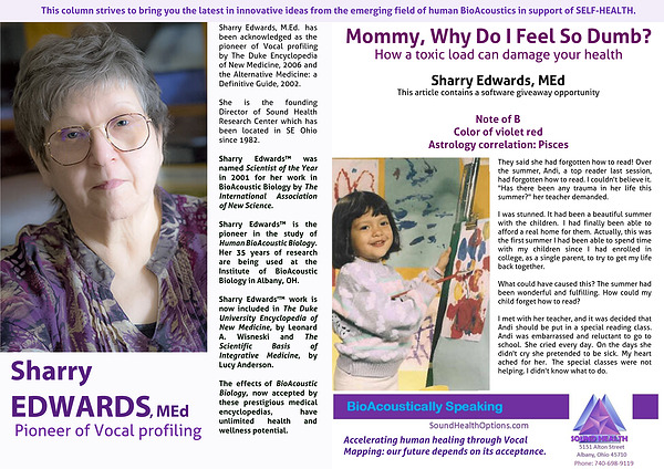 This column strives to bring you the latest in innovative ideas from the emerging field of human BioAcoustics in support of SELF-HEALTH.