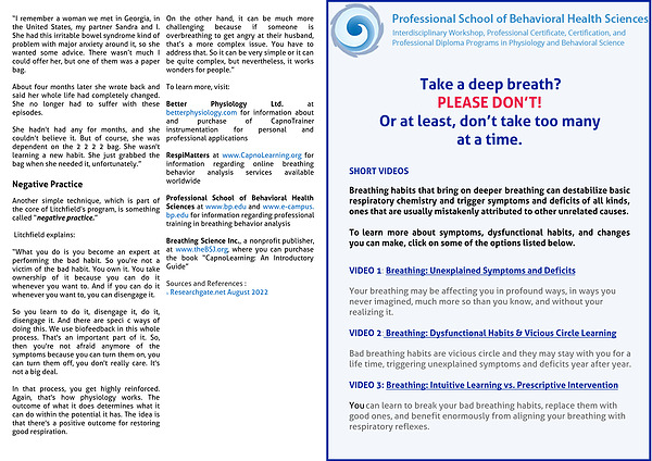 Professional School of Behavioral Health Sciences at www.bp.edu and www.e-campus. bp.edu for information regarding professional training in breathing behavior analysis