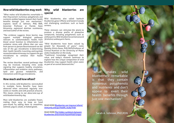 “Traditional knowledge recognized their value, and today’s research continues to explore how the unique composition of wild blueberries may support health when eaten as part of an overall balanced diet.”