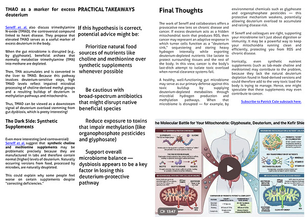Ironically, even synthetic nutrient supplements (such as lab-made choline and methionine) may contribute to the problem, because they lack the natural deuterium depletion found in food-derived versions and could therefore add to the very toxic load the body is trying to manage. Hence, one might speculate that these supplements may even contribute to cancer.