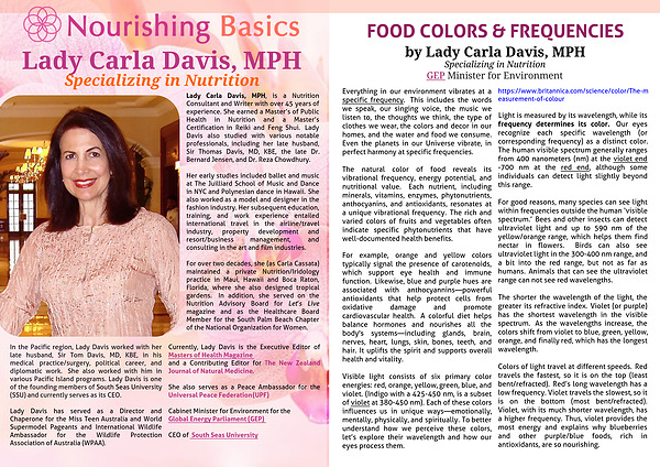 The natural color of food reveals its vibrational frequency, energy potential, and nutritional value. Each nutrient, including minerals, vitamins, enzymes, phytonutrients, anthocyanins, and antioxidants, resonates at a unique vibrational frequency. The rich and varied colors of fruits and vegetables often indicate specific phytonutrients that have well-documented health benefits.
