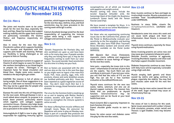 Elastase fits well into this mix of frequencies for the next week. Although Elastase is not a much talked about enzyme; its purpose is to break down proteins particularly elastin which together with collagen supports connective tissues. Elastase also helps break down the proteins of incoming invaders that are so prevalent in the colder months.