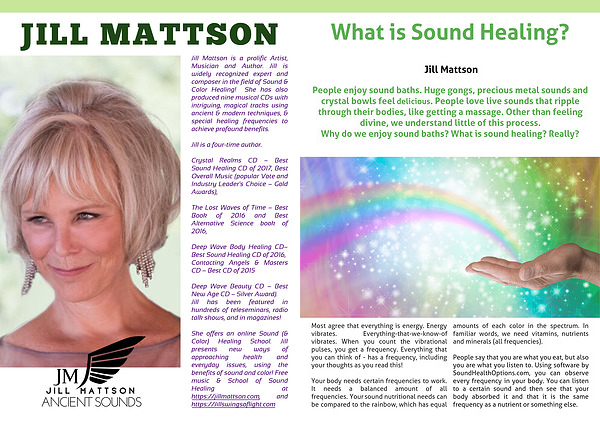 She offers an online Sound (& Color) Healing School. Jill presents new ways of approaching health and everyday issues, using the benefits of sound and color! Free music & School of Sound Healing at https://jillmattson.com, and https://Jillswingsoflight.com