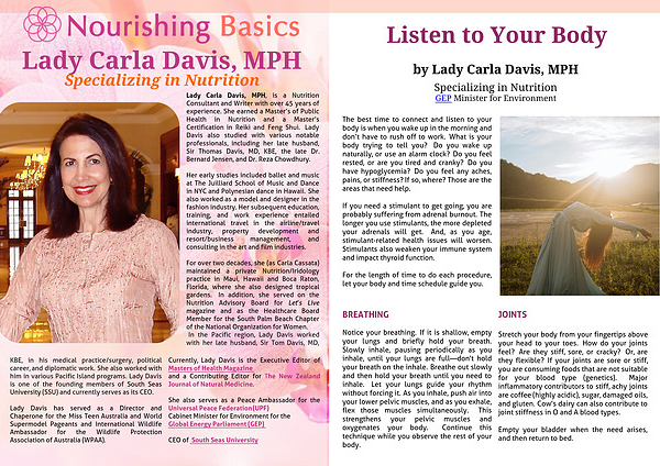 The best time to connect and listen to your body is when you wake up in the morning and don’t have to rush off to work. What is your body trying to tell you? Do you wake up naturally, or use an alarm clock? Do you feel rested, or are you tired and cranky? Do you have hypoglycemia? Do you feel any aches, pains, or stiffness? If so, where? Those are the areas that need help.