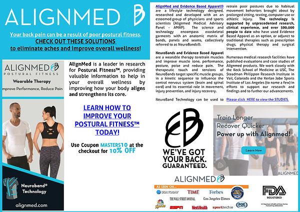 AlignMed and Evidence Based Apparel® are a lifestyle technology designed, researched and developed with an an esteemed group of physicians and sports scientists (Alignmed Medical Advisory Panel - AMAP). The science and technology encompass exoskeletal garments with an anatomic matrix of bands, panels and seams, collectively referred to as NeuroBands®.