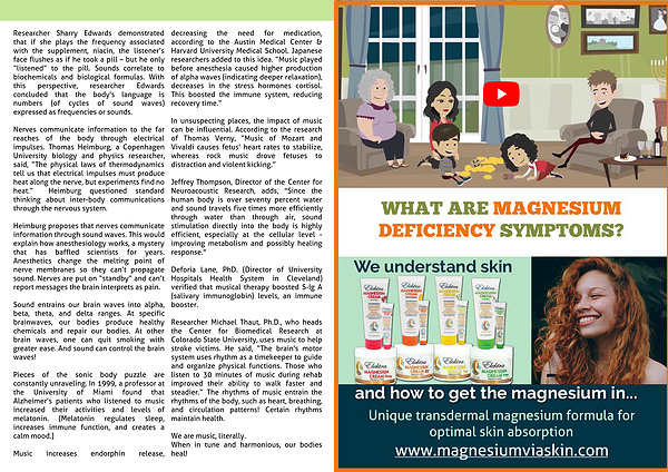 Researcher Sharry Edwards demonstrated that if she plays the frequency associated with the supplement, niacin, the listener’s face flushes as if he took a pill – but he only “listened” to the pill. Sounds correlate to biochemicals and biological formulas. With this perspective, researcher Edwards concluded that the body's language is numbers (of cycles of sound waves) expressed as frequencies or sounds.
