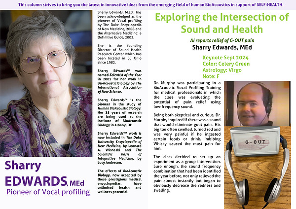Dr. Murphy was participating in a BioAcoustic Vocal Profiling Training for medical professionals in which the class was evaluating the potential of pain relief using low-frequency sound.