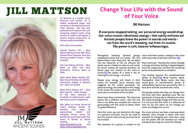 She offers an online Sound (& Color) Healing School. Jill presents new ways of approaching health and everyday issues, using the benefits of sound and color! Free music & School of Sound Healing at https://jillmattson.com, and https://Jillswingsoflight.com